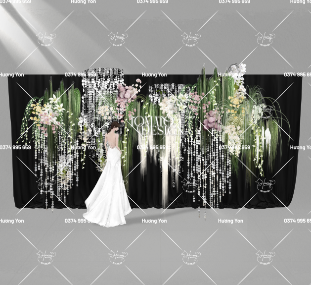 back check in hoa phối rèm sẵn
