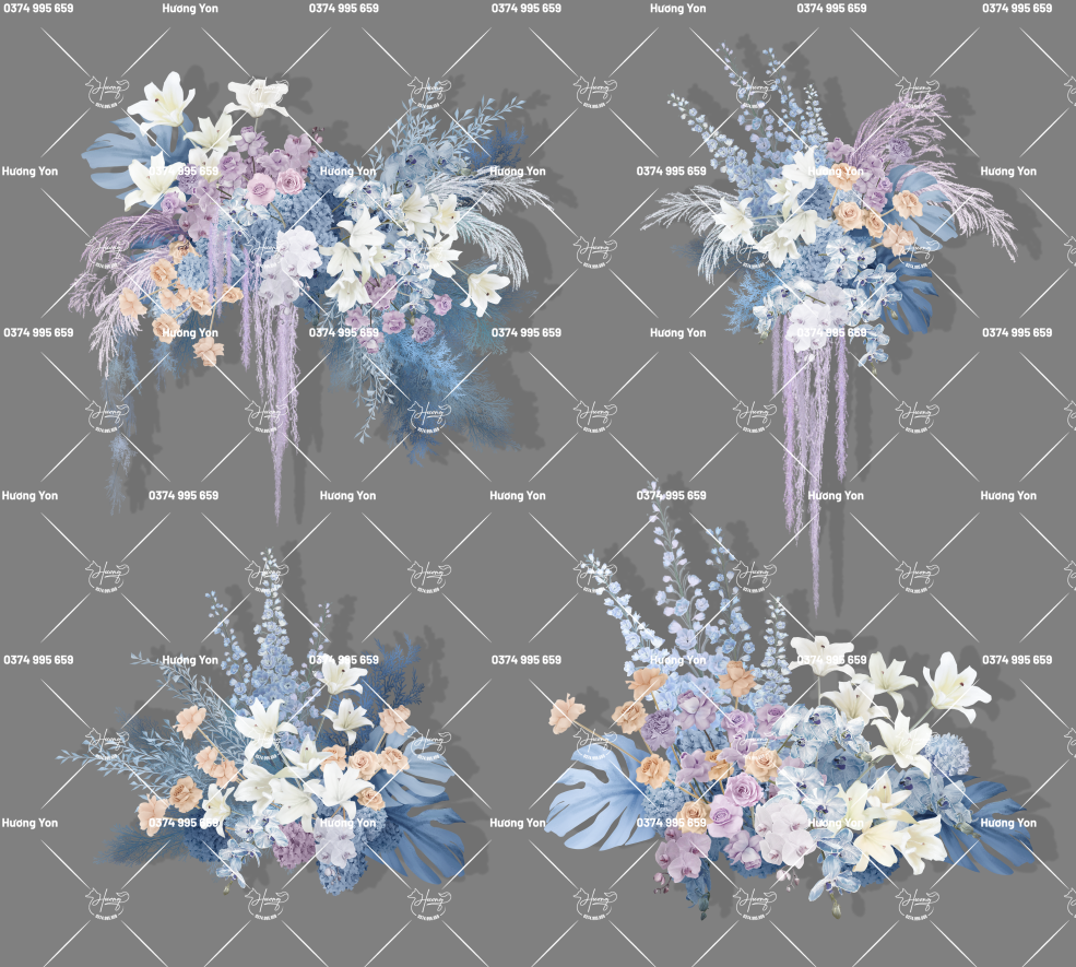 hoa hồng pastel mix xanh dương vẽ tay số lượng