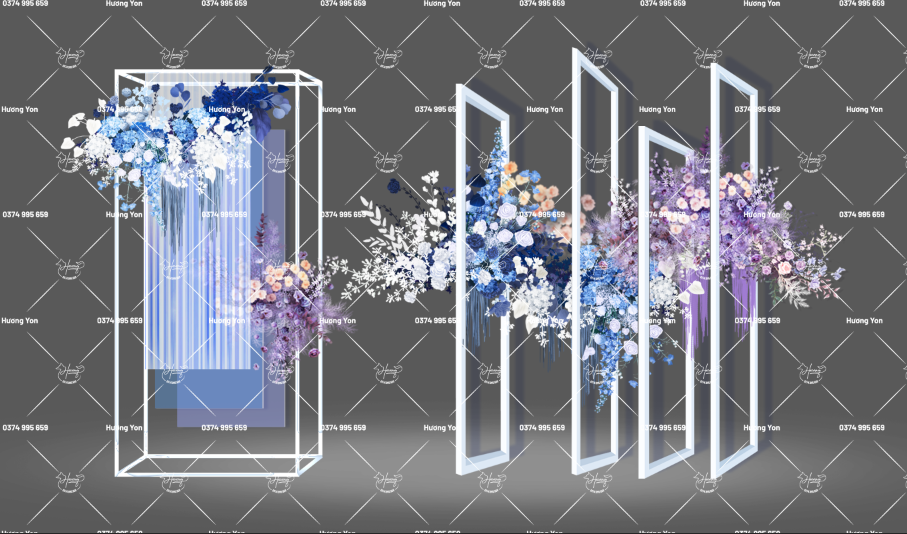 phối cảnh hoa xanh dương tím vẽ tay số lượng