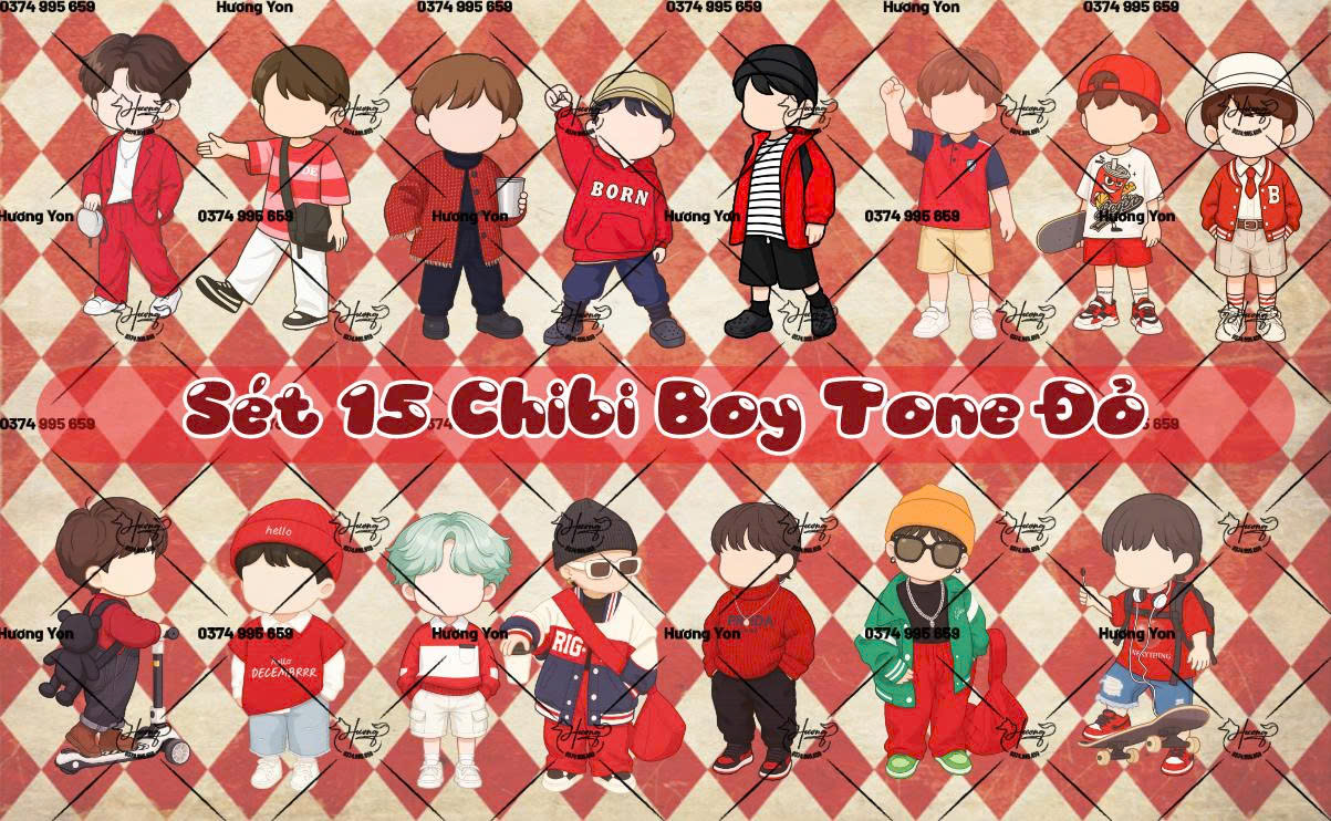 SÉT 15 CHIBI BOY TONE ĐỎ
